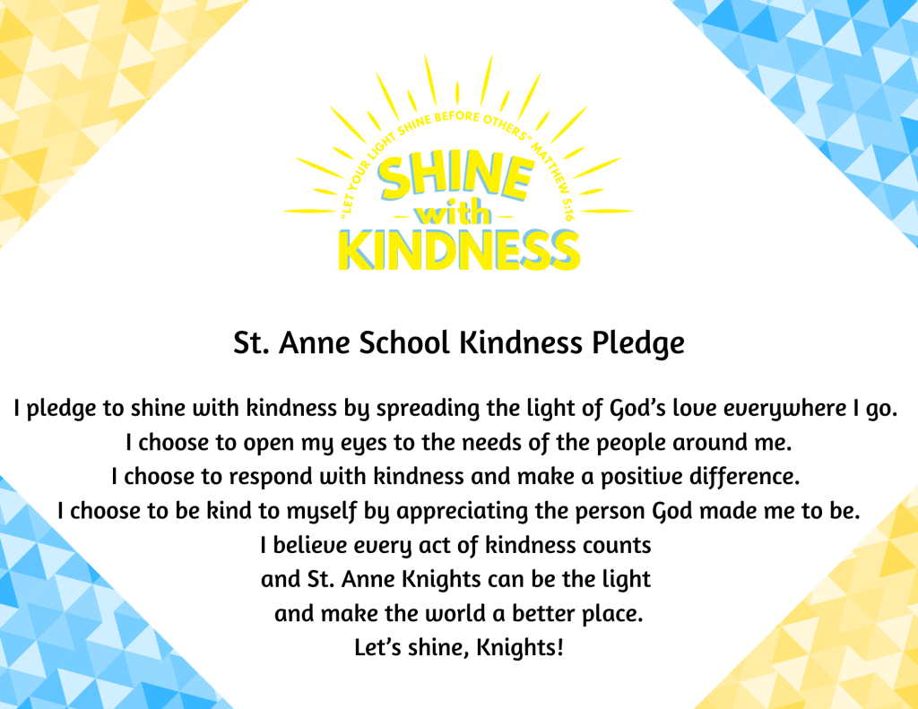 I hope that my sharing about the Kindness Ambassadors, Kindness Rallies, and Family Kindness Knight has encouraged you to celebrate more kindness in your school community. In life I like to think of going with the flow, specifically the Holy Spirit flow. By praying, relying, and cooperating with the Holy Spirit, the kindness ideas just seem to radiate like confetti.