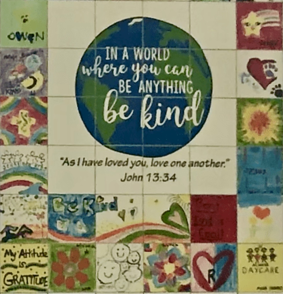 Creating a kindness mural was definitely a memorable way to showcase the importance of kindness at our school. At the event, students, parents, faculty, and staff painted kindness tiles that were professionally installed in our school lunch area. I provided guidelines for designing the tiles so that they included kind messages, Bible verses, and inspiring artwork.